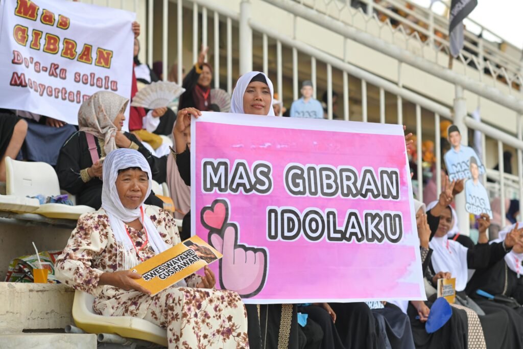 Jember – Cawapres nomor urut 02 Gibran Rakabuming Raka menghadiri acara Apel Sholawat Kebangsaan di stadion Jember Sport Garden (JSG) di kecamatan Ajung. Dia disambut puluhan ribu emak-emak yang sudah cukup lama menanti.