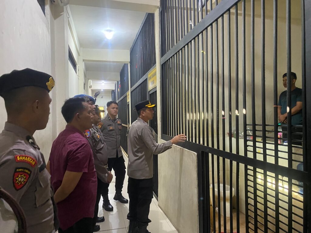 GRESIK – Wakapolres Gresik Kompol Danu Anindhita Kuncoro Putro melakukan pengecekan ruang tahanan untuk memastikan kondisi ruang tahanan dan para tahanan di Sat Tahti Polres Gresik. Jumat (19-04-2024)