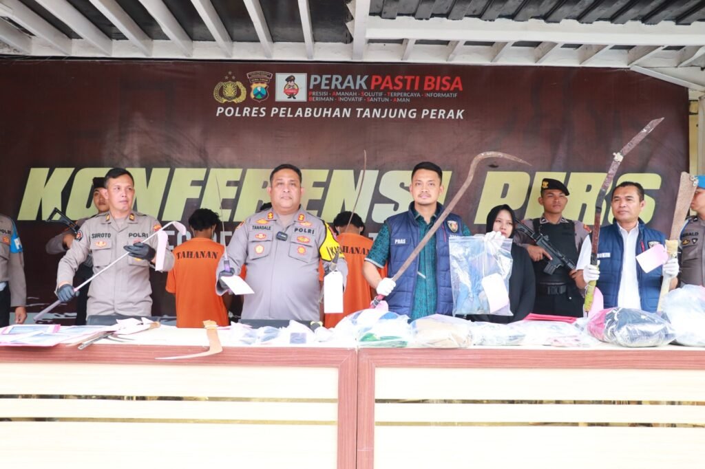 Selain mengamankan para tersangka, Polisi juga menyita barang bukti yakni, pakaian korban, satu corbek panjang 1,5 meter, satu clurit panjang 1,2 meter, satu clurit panjang 90 Cm, satu samurai panjang 1 meter, satu Hp, rekaman Cctv, Visum Et Repertum dan Rekam Medis.