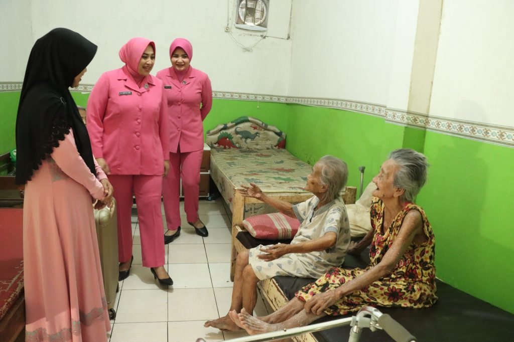 GRESIK – Senyum merekah menghiasi wajah para lansia di Yayasan Panti Jompo Lestari saat Bhayangkari Cabang Gresik menggelar bakti sosial dan kesehatan pada Rabu (18-09-2024).