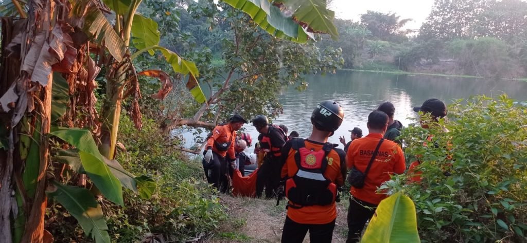 Jasad korban ditemukan Tim SAR tidak jauh dari lokasi korban menceburkan diri dan mengambang tertutup enceng gondok.