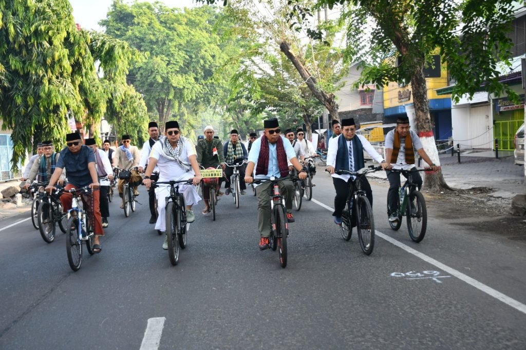 Uniknya, seluruh peserta gowes kompak mengenakan pakaian muslim.