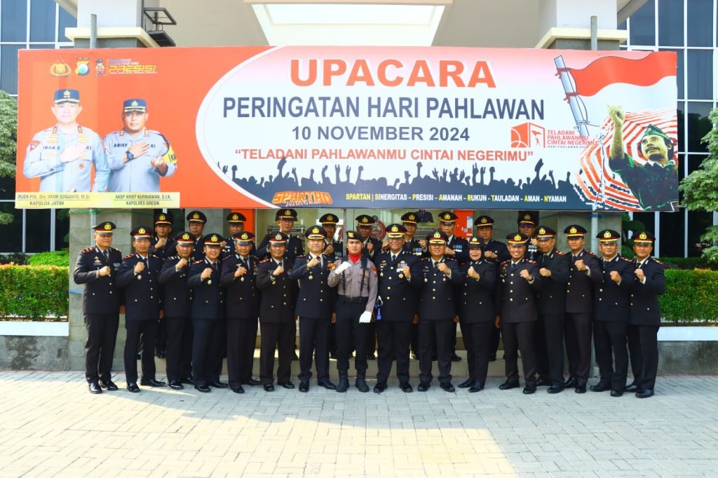 GRESIK – Di bawah langit yang cerah pada Minggu, 10 November 2024, suasana khidmat menyelimuti Halaman Mapolres Gresik. Upacara Peringatan Hari Pahlawan Nasional Tahun 2024 menjadi momen sakral untuk menghormati jasa para pahlawan yang telah gugur dalam memperjuangkan kemerdekaan Indonesia.