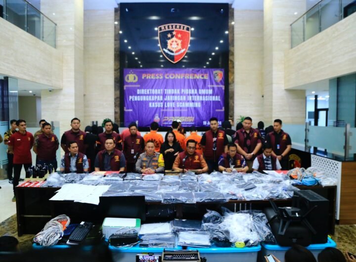 Jakarta. Penyidik Direktorat Tindak Pidana Umum Bareskrim Polri melakukan penangkapan terhadap tiga tersangka penipuan melalui aplikasi kencan...