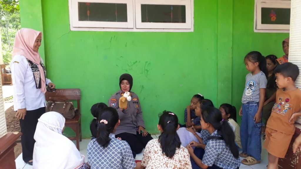 Kegiatan trauma healing kali ini dipimpin Kasat Binmas Polres Pasuruan, Iptu Sunarti di lokasi pengungsian, SDN 2 Cowek.