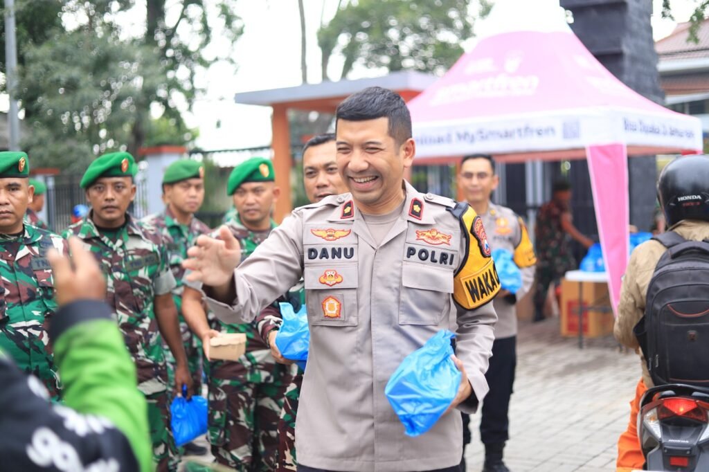 Gresik – Dalam semangat berbagi di bulan suci Ramadan 1446 H, Polres Gresik dan Kodim 0817 Gresik kembali menunjukkan sinergitasnya dengan menggelar kegiatan pembagian takjil kepada masyarakat. Acara ini berlangsung pada Kamis, 27 Maret 2025, di Jalan Dr. Wahidin Sudirohusodo No. 214, Gresik, dengan penuh antusiasme dari aparat maupun warga yang menerima takjil.