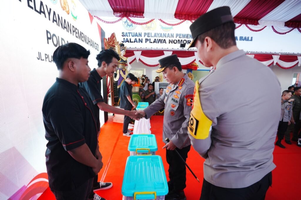 Sigit juga memberikan 100 paket sembako ke petugas SPPG Polda Bali. Adapun total siswa Penerima manfaat MBG Polda Bali sebanyak 3.072 Siswa.