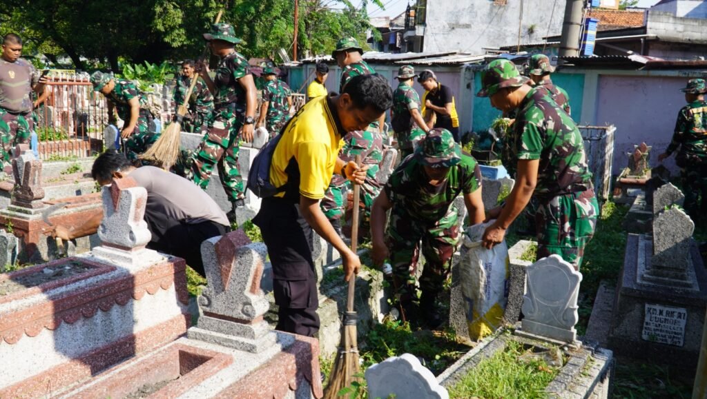 Para pemuda ini ikut ambil bagian dalam membersihkan area makam, sebagai bentuk penghormatan kepada leluhur dan semangat gotong royong di Hari Bhayangkara ke -79.