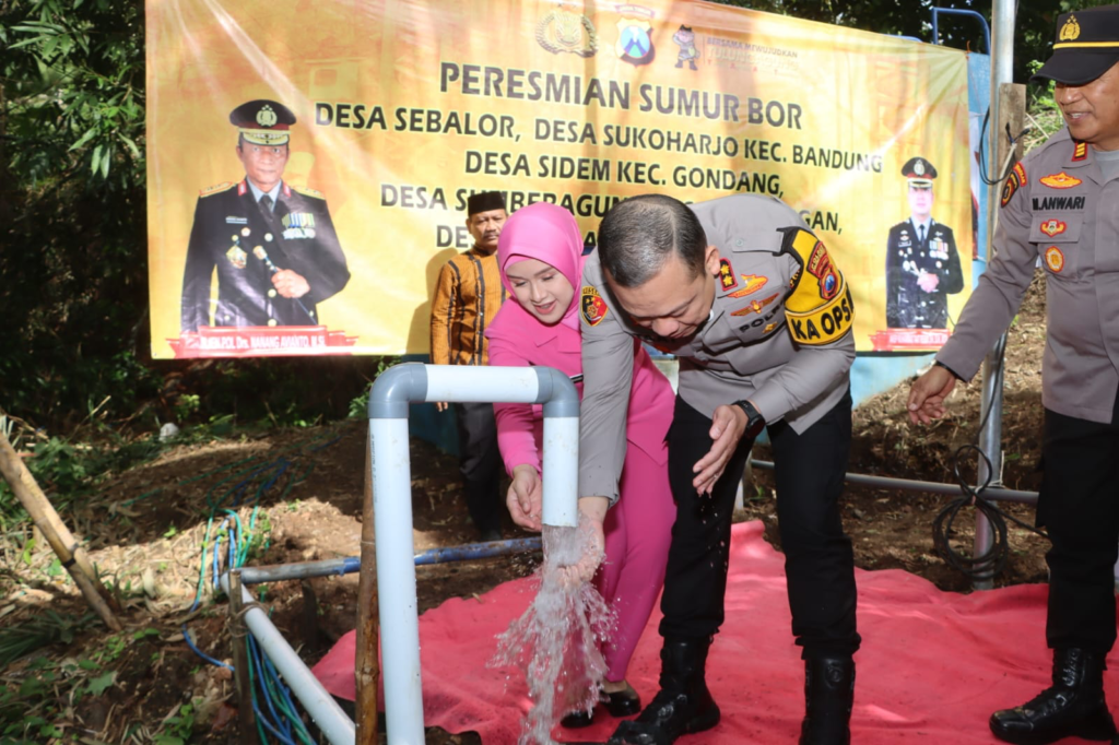 TULUNGAGUNG – Kapolres Tulungagung AKBP Muhammad Taat Resdi meresmikan Enam titik sumur bor yang tersebar di Lima Kecamatan di Kabupaten Tulungagung.