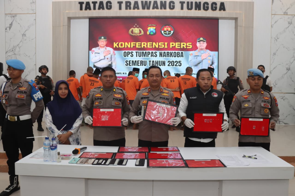 Hal tersebut disampaikan Wakapolres Pamekasan, Kompol Hendry Soelistiawan, didampingi Kasat Resnarkoba, AKP Agus Suyanto, Kasi Humas, AKP Jupriadi dalam konferensi pers Operasi Tumpas Narkoba Semeru 2025, di Gedung Tatag Trawang Tungga, Jl Stadion 81 Pamekasan, Rabu (17/9/2025) pekan lalu.