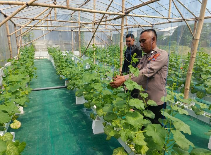 Dukung Ketahanan Pangan, Polsek Gresik Meninjau Green House Tanaman Melon di Desa Suci Kec. Manyar