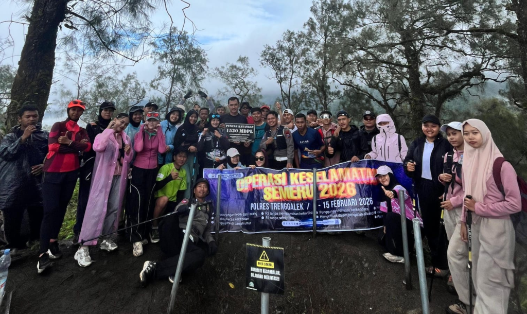 Melalui kegiatan ‘Muncak Bareng’, Polres Trenggalek melakukan pendekatan pada generasi muda dan penggemar mendaki gunung untuk mengkampanyekan Operasi Keselamatan Semeru 2026, Selasa (3/2/26).